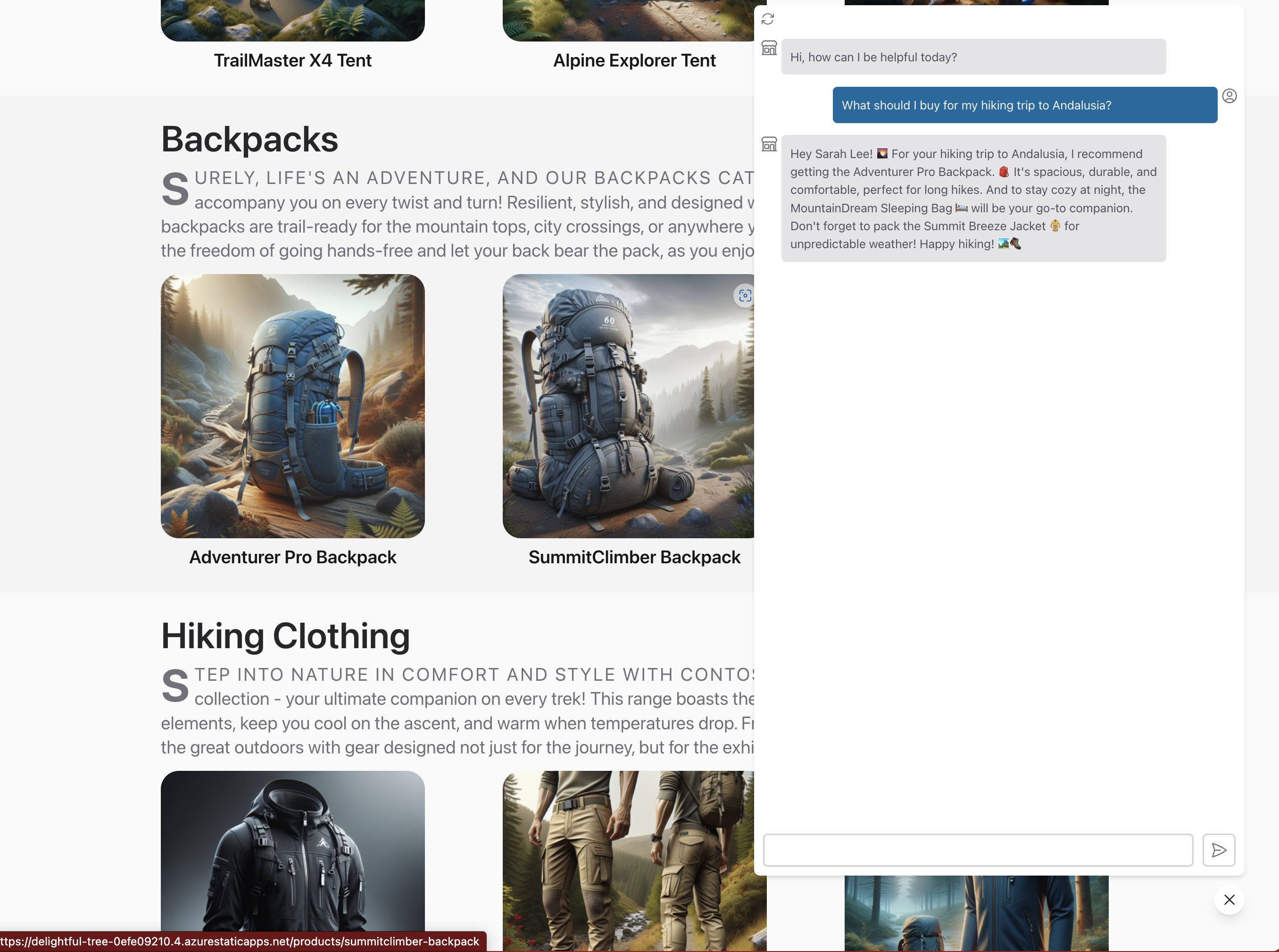 You're a new hire in the Contoso Outdoors organization. They are an e-commerce company with a successful product catalog and loyal customer base focused on outdoor activities like camping and hiking. Their website is hugely popular but their customer service agents are being overwhelmed by calls that could be answered by information currently on the site.